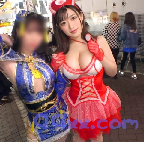あらすじ:コロナの落ち着き具合故に賑わいを見せた渋谷ハロウィン2021!そこで見つけた二人組のコスプレ女子をナンパ!Hカップの爆乳が目立ちすぎるエロナースとホテルへ!