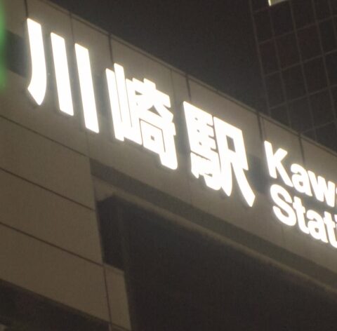 満月の夜、雨に濡れた川崎の街。