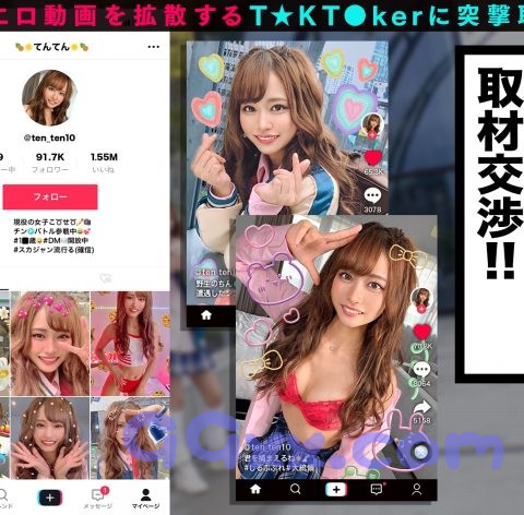 T☆kTokでエッチな動画を投稿するエロ可愛い女にDM(ダイレクトメッセージ)で連絡を取り、その場のノリでしれ~っとSEXまでしちゃおうという、次世代ナンパ企画!(1) 事前にスタッフが連絡を取り渋谷区神宮前で待ち合わせた、今回のT☆kT●kerは「テン」ちゃん(1●歳)シリーズ初の現役女子●生の登場だ!さっそく近くのベンチでお話し聞くことに (2)現在はお友達とデカチ○ポ狩り(ヤった人数とチ○ポの大きさでポイントを貯める)で勝負中とのことなので我々もその勝負に協力してあげることに!早速ホテルへ向かいデカチ○ポのもとへ移動!(3)と、その前になんと彼女、車に同乗していたスタッフのチ○ポを弄りはじめ、なんとフェラ抜きまでしてしまった!友達との勝負に勝ちたいのか、はたまた物凄いド変態なのかわからないがとんでもないJ●であることは確かなようだ。(4) ホテルに到着した我々のもとにいよいよデカチ○ポ男が登場!大興奮のテンちゃんはノリノリでズボンを脱がせた後、すぐさまお口でしゃぶり始めてしまった!目をトロンさせながら喉奥までジュッポリとフェラするテンちゃん♪こちらも負けじと彼女のぷっくりとした美乳をモミモミ、涎いっぱい垂らした乳首をじゅるじゅるとしゃぶってあげると感じやすいのか彼女もJ●おマ○コがもうぬるぬる!そのまま生チ○ポでズブリ!J●マ○コの締め付けはハンパじゃなく、デカチ○で奥を刺激すると腰をくねらせて昇天イキ連発!!デカチ○に子宮を何度も刺激され絶頂するテンちゃん。そのまま膣奥にザーメン放出!(5)お次はお風呂で2回戦!お口でねっとりと乳首責めをしてもらい、元気なったチ○ポを再び挿入!!狭い室内で密着しながら濃密プレイ!部屋に戻っても熱は収まらず、騎乗位で腰を打ち付け絶頂しまくる超スケベSEX!そして自分のスマホで撮られながらハメ撮り中出し!(6)もうこれで終わりかと思いきやまだまだヤリ足りないテンちゃん!2回も出して干物みたいになってしまった男を帰し、新たに男を呼んで彼女にも卑猥なエロコスに着替えさせ超延長戦開始!!用意した収録テープの限界までセックスしまくる超絶倫J●の姿にもう目が離せない!!!