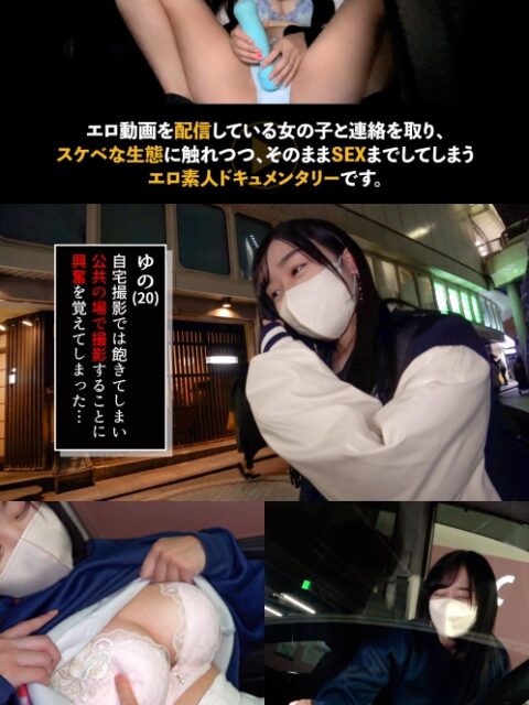 あらすじ:エロ動画を配信している女の子と連絡を取り、その動画やその生態に触れつつ、そのままSEXまでしてしまうエロ素人ドキュメンタリーです。待ち合わせをしていたyunoさんと、持参してきたという本格機材を使って駐車場でフェラ抜き撮影!外から丸見えだから背徳感もあってエロすぎる!撮影が終わったらホテルで続きをしちゃいましょう♪…