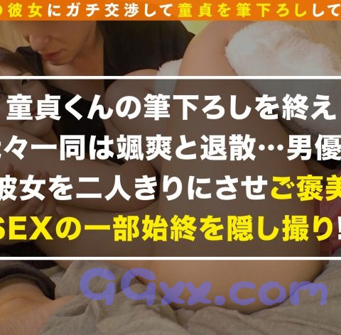 この企画はシロウト美女が彼氏の目の前で、見られながら童貞くんの筆おろしをしてあげるNTR ドキュメント!! モテまくりのイケメンにプライベートで遊んでいるシロウト美女を紹介してもらい、強引に女の家に乗り込み、筆おろしSEXさせちゃいます! その後は彼氏とのラブラブSEXもハメ撮りしちゃう一度で二度おいしい新感覚寝取らせ企画です♪【1】今回のターゲットはイケメン「G」さんの彼女「ナツ」ちゃん(21歳)。付き合い始めて2ヶ月くらいで現在もGさんにベタ惚れ状態での彼のお願いならなんでも聞いてくれるこの企画に持ってこいの彼女さんだ。【2】今回、応募してくれた童貞君と合流後、早速Gさんが電話で彼女のお家へ行く許可を取ってくれた。手ぶらでは失礼なのでお土産を購入して彼女のお家へレッツゴー!!【3】現在友人とシェアハウスをして暮らしているナツさんのお部屋にお邪魔した我々。本日友人さんは不在のようでこちらとしても都合がいい状況だ。少しお話しを聞いた後さっそく童貞君から筆おろしのお願いが!よく状況がつかめていないようすの彼女にGさんが優しく説明。最初はかなり嫌がっていた様子のナツさんだがやってくれたら、Gさんがたっぷりご褒美SEXをしてあげると言うと難なく承諾。始めての筆おろしSEXをしてもらうことに!保育士さんならではの母性溢れる優しいキスから、物柔らかに乳首舐め!奥まで飲み込む献身的フェラチオ!いよいよ童貞を卒業することになり彼女の方から騎乗位で生チ○ポを迎え入れてセックスへ開始!!彼氏に見られながらも童貞君のピストンに感じまくりイキまくる!新鮮すぎる快感にお互い熱くなり行為に卑猥な没頭する!我慢ができなくなった童貞君に彼女方から「中に出していいよ♪」と優しく童貞君の溜まり溜まった大量ザーメンを生中出し!!童貞君はこれで満足したようだがナツさんはそうもいかない、約束通り今度は彼氏とSEX開始!寝取らせの影響かいつもより激しく愛し合う二人、さっきまでのピュアで恥ずかしがり屋な彼女から彼氏の前でしか見せないドスケベな本性を魅せていく彼女の姿に目が離せない!!