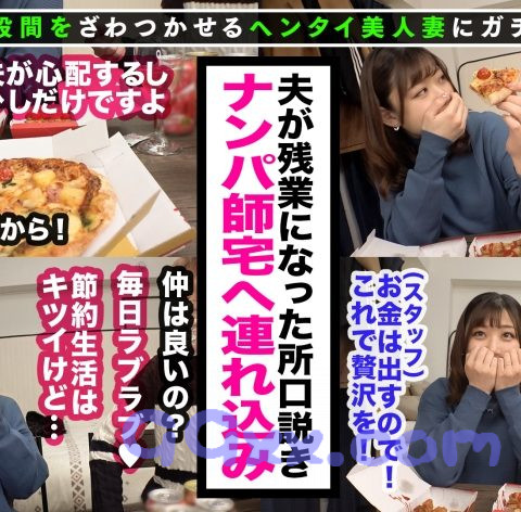 あらすじ:「刺激が欲しい」「ちょいムラ」「なんだかアソコがざわつく」そんな普通の主婦さん達の仮面に隠された性欲を剥き出しにしてあの手この手でヤリまくる何でもあり企画。今回のターゲットは慣れない主婦業に悪戦苦闘中の新婚若妻のエナさん(23)!服の上からでも圧倒的存在感の叡智の結晶Hカップ爆乳が目を引く色白美人!幸せ真っ只中のエナさんが金銭的に苦労していると知るやいなやお金をダシにあくどく切り込む男達!!言葉巧みに触って脱がせてあれよ、あれよとセックスまで!!口ではダメだと言いつつ若さを持て余した肉体はやる気満々!禁断の生ハメ中出しで妊娠確実!完オチ新妻6射精SEX!!