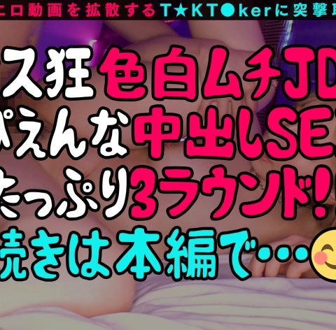 あらすじ:T☆kTokでエッチな動画を投稿するエロ可愛い女にDM(ダイレクトメッセージ)で連絡を取り、その場のノリでしれ~っとSEXまでしちゃおうという、次世代ナンパ企画!!今回のT☆kT●kerはホスト狂いの金髪ギャル、メルちゃん(21歳)担当ホストに約束をすっぽかされた傷心中の彼女にアタックしてみるとまさかのチョロ堕ち→トイレで手コキフェラ!これはもう期待せざるを得ないとそのままホテルへ直行!超ビッチ激かわギャルとの過激すぎるセックスにご期待ください!