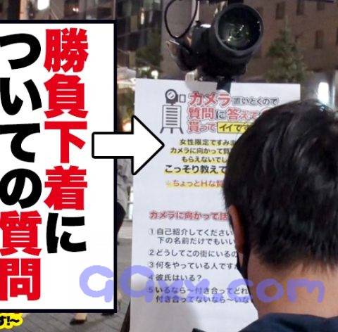 女なら一着は持っているという勝負下着。街行く女性の勝負下着を見てみたい!その欲望を叶えるためにこんな企画を考えてみました…。ある日の恵比寿駅前、夜9時ごろ。男女で溢れる夜の街に置かれた一台の無人カメラと張り紙。そこには「女性限定ですみません!カメラに向かって質問に答えてもらえないでしょうか?こっそり教えて下さい!※ちょっとHな質問もあります。」と書き、今回は、女性限定で11項目の質問を用意しました。その質問の8番目に「勝負下着を持っているのか??」の質問…この企画のキーとなる質問である!無人カメラの質問に答えてくれた女性に交渉して勝負下着を見せてもらう!果たして、質問に答えてくれる女性はいるのか??そして、勝負下着を見せてくれる女性は現れるのか??夜の恵比寿で検証してみた!!カメラ設置から一時間…露出度高めのベロベロに酔っ払ったギャルが現る!美人なうえにオッパイがデカい!そして溢れ出るエロさ!さっそくテレビの取材と偽って声をかけてみた!彼女の名前は「マコ」さん26歳。職業はキャバクラ嬢。こんなド派手な見た目をしてますが、実は元銀行員♪前職はお堅い仕事ですが、彼女自信は超男好き!ナンパされるために露出度の高い洋服を着ているというw彼女の家に上がり込むと、酔っ払ってるせいなのか、ヤリマンだからなのか、すぐ乳首を見せてこようとしますw抜群のノリですんなりと勝負下着を見せてくれ、Gカップの爆乳と贅肉のないクビレを披露♪もう待ってましたと言わんばかりに、当たり前のようにセックス開始♪とにかく彼女の舐めテクはスゴい!乳首にチ○ポ、アナルまでも彼女の餌食にw激しいセックスを繰り広げ、フィニッシュはどっぷりと膣内に中出し♪今回の恵比寿検証では、顔、スタイル、エロさ、全て兼ね備えた最高のギャルに出会えました♪