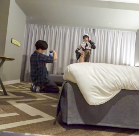 お酒好きの現役女子大生コスプレイヤー【D・D・ほっぴぃさん】と個人撮影会!166cmと高身長でHカップ爆乳とスタイル抜群。彼氏持ち。さっそく持参した衣装に着替えてもらって撮影開始!Mっぽい写真撮ってもいいですか?と美尻を叩きながら撮影していき徐々にスキンシップを図っていく。段々感じてきた様子なので、スパンキング→電マでお漏らしでスイッチON。こちらの要望いいなり状態にww股間愛撫→爆乳揉み→キス→手マン(潮吹き)→クンニ→手マン(びしょ濡れ)→乳首弄り→フェラ。唾を垂らしながら丁寧にねっとりと舐めてくれます。バックで挿入。「え?これも撮るんですか?」と戸惑うも腰をパンパンと打ちつけると「あっ!あっ!あっ!」と気持ち良くなっちゃってるご様子wwコスプレ衣装でプリプリのデカ尻バック超エロ~い!!立ちバックで腰砕け→騎乗位→ベッドで正常位でそのまま中出し!!衣装汚れちゃいましたね、と服を脱がせて2回戦。騎乗位→四つん這いバック→手マン(潮吹き)→屈曲位。ブルンブルン揺れる爆乳Hカップが素晴らしいww正常位で顔射フィニッシュ!!俺ら相性いいねwまた撮影する時エッチしようよwと言うと「はい///」と答える押せばヤレるドMレイヤー最高ですwww