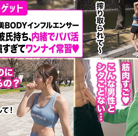 【腹筋6LDKのバッキバキに鍛えたエロボディ!!】本日のイ○スタ女子は皇居ランナーの『るい』さん!!見るからにアスリートで、おもいっきりくびれているお腹を出しちゃって開幕エロぃ。引き締まった美ボディと整ったお顔の美形イ○スタ女子でございます。そんな『るい』さんですが、筋トレと並行してP活も行っているという、実はエッチな女の子でもありますw早速こちらも性交渉してみたらあっさりOKでホテルへ直行!!スレンダーボディを心置きなく拝ませていただきます!!流石アスリートと言わんばかりの美ボディに絶句…。おっぱいも綺麗なおわん型で勃起…。おまけに乳首の感度もよくてマジでエロ過ぎ。おま●こもパイパンでちょっと触っただけで濡れちゃう高感度仕様。こりゃあもうチ●コをいれてトレーニングしないといけないので、そのまま挿入しちゃいますっ!!挿入するや否や、ものすごい力で締め付けてくる膣圧に驚愕っ!!腹筋だけじゃなく膣筋もしっかり鍛え上げられていましたwこんなトルクいっぱいに締め付けられたらあっちゅーまに射精してしまう…。必死に我慢して耐えていましたが、あまりの激しさに負けてしまいそのまま中出ししちゃいましたっ!!だがしかし、これで終わりじゃないのがアスリート。こっからはさらに激しいトレーニングが待っている2回戦目の開始ですっ!!#イ◯スタ#P活#ビッチB:89 W:56 H:86