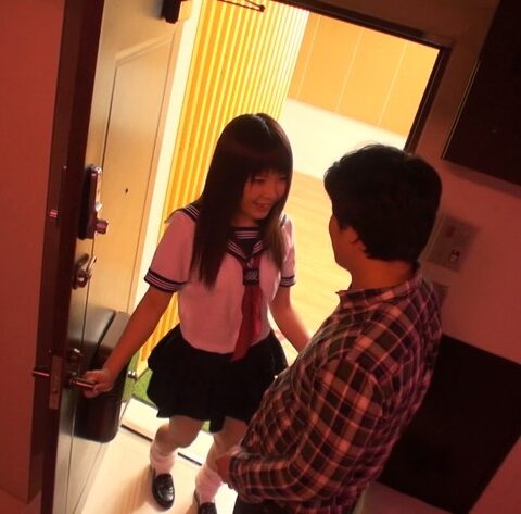 部屋に入るや否やの即尺からスタート。制服が良く似合う愛らしいルックスも○!