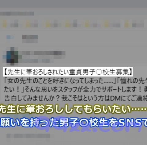 「憧れの先生に筆おろししてもらいたい」そんな男子○校生の夢を叶えてあげようという神企画!!童貞くんには1ヶ月間オナ禁してもらいザーメンを溜めに溜めた状態で本番当日へ…教え子の登場とともに企画内容を聞かされて戸惑いを隠せないムッチリHカップ女教師!頑なに拒むも司会者のゴリ押しと可愛い教え子の熱意に負けて、まずはおっぱいを触らせてあげることに。初めてナマで見るド迫力Hカップ乳に興奮が隠しきれない童貞くん…緊張しつつもじっくり味わうように揉みしだき、乳首をちゅぱちゅぱ♪背徳感も手伝ってか少しずつスケベモードに突入した女教師は手マンを指導しながら喘ぎ乱れ、いやらしい手つきで童貞チ○ポをまさぐってじゅっぽり咥え込み!乳圧満点のパイズリでご奉仕し、そのまま騎乗位で念願の筆おろし!!最初は女教師が優しくリードするも、教え子のオスの本能が覚醒しパンパン突き上げられて息絶え絶えwwどっぷり中出し後もピストン祭りは終わることなく、体位変えつつ連続爆射で豊満マ○コはどろっどろ…www