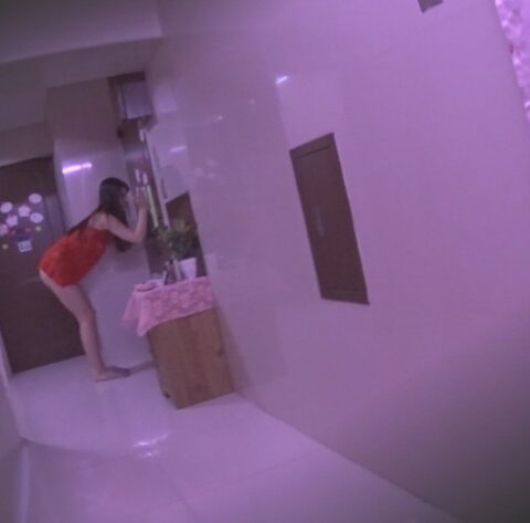 部屋に入るとカーテンを閉めて大きなお尻を突き出して挑発して来ます。