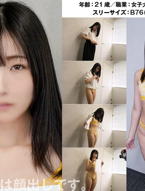 契約書の読み上げ、契約書を持って着衣と下着姿で写真撮影。ブラとパンティ姿になると、小振りだが形のよさそうな胸、抱き心地のよさそうなスタイルが目を引く。