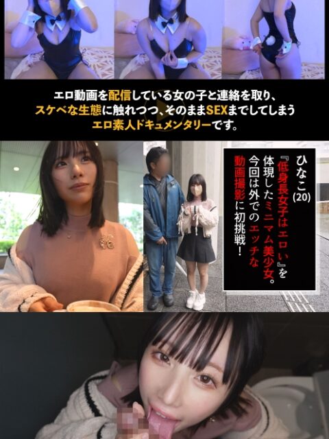 あらすじ:エロ動画を配信している女の子と連絡を取り、その動画やその生態に触れつつ、そのままSEXまでしてしまうエロ素人ドキュメンタリーです。今回はhinakoさんが登場!結構なM子ちゃんらしく、責め甲斐がありそうです!そんなこんなでインタビューをしていたらトイレでフェラ抜きの流れに!凄テクフェラを披露され、即抜かれちゃいました♪続きをするためにホテルに向かいます…