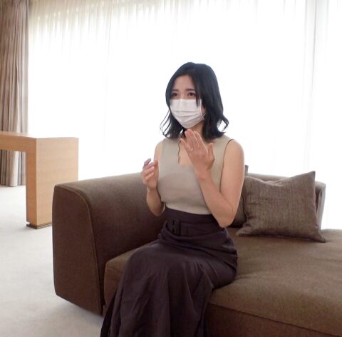 あらすじ:自身は保健室の先生、旦那さんも中学校教諭と、学校従事者夫婦の「とわさん 30歳」AV出演がバレたら特にまずい職業のためかマスクを付けていますが、乳首を弄っていたらすっかり蕩けてしまい、キスしたいから外してという要求に素直に応じてしまいます。乳首など外だけでなく中も相当敏感で、指マンや、挿入しても腰を動かさずとも悶えるほど。もちろんそれで終わる訳がなく容赦なく腰を振っていくと、感じすぎてフィニッシュ直前の喘ぎ声は絶叫に近いものになってしまいます。