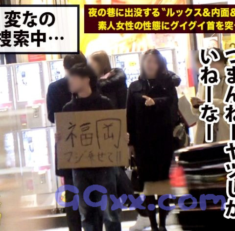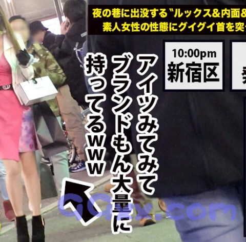 ○テーマ:夜の巷に出没するルックス&内面&etcがぶっ飛んだ素人女性の性態にグイグイ首を突っ込むドキュメンタリー○①クリスマスの時期に新宿をうろついていると道端で座り込んで飲み会をしていたりムササビの着ぐるみをしていたりヒッチハイクしていたりと無法地帯!こんなに色んな人がいるなら激レアさんもいるだろうと期待を込めて街中を歩きます。そこで出会ったのはホノカさん。ブランドのショップバックを何個も持って歩いているので声を掛けてみると今からお客さんから貰ったプレゼントを質屋に売りに行くというので着いて行きました。無事換金してご機嫌のホノカさんに密着で取材をお願いするとお客さんの家にプレゼントを貰いに何件か周るのでタクシー代払ってくれたら良いですよ♪との事だったので車を出して取材続行です。②次々と男からプレゼントを貰いそれを速攻で売りに行くホノカさんww一息ついたので呑みに行ってゆっくり話を伺います。経験人数が200人を超えると言う彼女、3人でホテル行きますか?とノリで言ってみると簡単にOKしてくれました。③ホテルで話をしながらおっぱいを触っても全然嫌がらないのでもっと大胆に触れて服を脱がすと気持ちよさそうに体を捻るホノカさん。スタッフのち○ぽを美味しそうに咥え、腰をゆらゆら揺らす姿がなんとも色っぽく魅力的です。④豊満なGカップでパイズリして貰えばあまりの気持ちよさについ出してしまい申し訳ないので男優にホテルまできて貰いセックス再開です。⑤目隠しをして刺激を与えたり電マを渡してオナニーをして貰いとろとろになってきたところで男優とバトンタッチしてさらに強い刺激を与えるとビシャビシャと潮を吹いてイってしまいました。後ろから挿入してピストンすれば脚をガクガク震わせて気持ちよさそうに喘ぎ、目をとろんとさせてセックスに夢中になってる様子のホノカさん。突き上げる度にぶるんぶるんと大きく揺れるおっぱいは絶景です。何度も膣奥目掛けてピストンし、カを堪能しながらフィニッシュ。激しいセックスが気に入ったらしくもう一回とお誘いをしてくるホノカさんでした♪