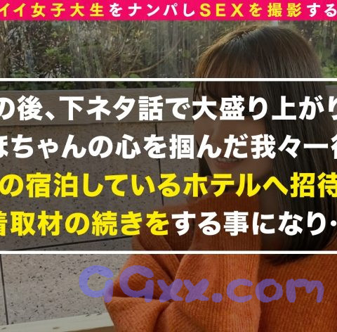 この企画は街行く女の子をガチでナンパし、リアルな素人女子のセックスを撮影、記録する企画である。今回撮影に成功した素人さんは、宮城県から観光に来ていた美人JDのミホちゃん。なんでも春から東京で就職予定で家の下見もかねて観光に来たとのこと。おしとやかで上品なうえに優しい性格でインタビューも快く引き受けてくれたので、さっそく観光先に同行させてもらいご飯を食べつつお話しを伺うことに!男性を虜にする大人っぽさや色気を持ち合わせている超魅力的な彼女、しかし現在彼氏はいないらしい。「モテそうなのに意外ですね…」「自分ではそんなに思わなかったんですけど性欲がすごい強いみたいで…それでだいたい男の人に引かれちゃってフラれちゃいます…」「例えばどんなところが性欲強いって感じますか?」「基本的にデンマ当ててるの好きだしおっきいおち○ちんで奥突かれるの好きだし精子飲むの好きだからエッチするとき毎回飲みます…」一見普通のJDだと思っていたミホちゃんだけど実は・・・精子大好き・デンマ大好き・デカチン大好きのド変態性欲モンスターだったのだ!!「よかったら私が泊まってるホテルに来ませんか?」とお誘いいただき、まさかの神展開でホテルイン♪部屋に入るや否やADのズボンとパンツを脱がせて手コキ・フェラを始める彼女!!バキュームを効かせたストロークは絶品!!チ○ポを絞るようにしゃぶるジュルジュルフェラに耐え切れず、あえなく暴発口内射精→ごっくん!!…これは強者!!やはり普通の男では対応しきれなかったのでデカチン男優を投入し、いざセックススタート!!色白のエロボディはアイスクリームのようにペロペロと舐めて食べちゃいたいくらい美しい!!大きくて柔らかいおっぱいを揉み揉み!いやらしい乳房にもう勃起が止まらない!!大好きな電マで爆イキしまくるド変態娘にいよいよデカチン生挿入!!ご要望通り奥までズブリ!!子宮の奥まで何度も突かれてハメ潮ドバドバ大量噴出!!激しい騎乗位で柔乳を振り乱しながら表情を歪ませる姿も堪らない!!おかわりをねだる底なし性欲モンスターに渾身の中出し&特濃顔射!!