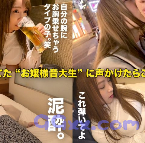 居酒屋で1人飲んでいた音大生のなおちんを酔わせて、お持ち帰りしてハメ撮り!!なおちんもナンパ待ちだったのか、すんなりホテルへin。早速お風呂へ!服を脱ぐと巨乳&パイパン!!今夜は大当たり!!なおちんはGカップくらいらしい。でかい。なんでパイパンなのかを聞くと流行りに乗ったと言っていて、音大生ではパイパンが流行っているようだwお風呂で尿意を催したのか突然座りこみおしっこwwwまさか音大生のおしっこをカメラに収められて大興奮ww胸のところがザックリ開いたスケスケなエロ下着を着てもらいパイズリwwピアノを専攻しているだけあって、繊細な指使いで乳首舐め手コキをしてくれるwほろ酔いのなおちんのおま○こに挿入!正常位やバックで責めまくる!現役女子大生はやっぱり最高ですね!!なおちんも動きたくなったのか、ムッチリお尻で杭打ちピストン騎乗位ww中出ししちゃったので精子を掻き出すために、イッたばっかのおま○こを手マンしてさらにイカせてあげました!