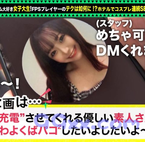 「充電させてくれませんか?」と優しい美女にお願いして、スマホを充電させてもらいつつエッチな充電もしちゃうスケベ企画。今回充電器を貸してくれた女神は、みづきちゃん!FPS大好きゲーマー女子だそうです♪鍛え上げられたエイムで狙った男性も狙い撃ち!?無事スタッフも射止められ、ホテルへGO!ホテルへ着き、持参のゲーミングPCを見せてもらいました!普段ゲームする姿も見せてもらうと、指さばきが凄い!これはエッチの方も期待できますね!引き締まったくびれに、柔らかいお尻、そして美脚!エロさが凝縮された身体を舐め回す!!パイパンマ●コを手マンすると汁が沢山垂れてきますwもう手がビシャビシャwww更にクンニで堪能した後は、オモチャで責めちゃいます♪電マで責めまくると、みづきちゃんも昂ってきたのかチ●コを握って来ましたwニッコニコで乳首舐め手コキ→強烈バキュームフェラで搾り取ってくるみづきちゃんwシックスナインで対抗し、互いの下半身がエッチな汁でドロドロに!そして遂に挿入!ベッドで騎乗!下から強烈ピストン!!廊下で立ちバック!我慢の限界なので、中出し!!休む間もなく、すぐにエッチなコスプレに着替えてもらい2回戦開始!w最初はバックを中心に奥をゴリゴリ刺激。その後はオイルを使って正常位!テカテカとエロい肉体をガンガン突きまくり!!最後はお口に大量射精でフィニッシュ!ゲーマーってこんなにエロかったんですねwww