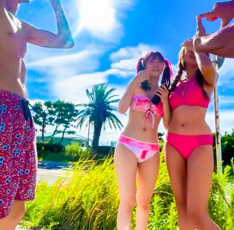 今年も真夏の海で水着ナンパ!写真モデルをお願いします!と水着ギャル2人組に声を掛けるが警戒される→飲みならいいとのことなのでお酒を奢って和む。色白美肌の童顔キャバ嬢【ゆーみちゃん(20歳)】。コンカフェも掛け持ちしていてセフレ持ち(7人)。犬系男子に弱いらしい。個室で撮影会&ギャラ飲みまで漕ぎつけてヤリ部屋へ搬送→私服で飲み→撮影会なので水着に着替えてもらう→撮影会→盛り上がったところで高額謝礼でAV出演を持ちかける→友達を別部屋に連れ出して2人きりに。セフレが7人もいるだけあって性欲が強くキスするとスイッチON!パイ揉み→水着の上から乳首責め→美乳乳首舐め→下を脱がしてパイパン判明→クンニ→クリ責め→手マン(軽イキ)→手マン(潮吹き)→フェラ→乳首舐め手コキ。ビンビンになったので正常位で挿入!おま●こキツくてめっちゃ気持ち良い!ソファで背面騎乗位→立ちバックでハメ潮を撒き散らす!気持ち良さそうに恍惚の表情を浮かべて自らの腰を打ちつける杭打ち騎乗位も良きwwバック→正常位でピストンしてると締まり良過ぎて思わず中出し!気持ち良いから更に連続で2回目の中出ししたらブチ切れられちゃったww