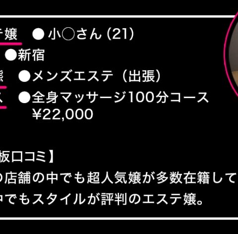 【今回のメンエス嬢】