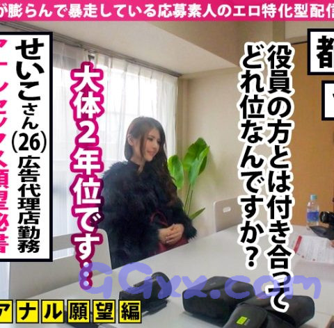 【ジャクソンはあんな事やこんな事を妄想している「妄想ちゃん」を応援します!!】シロウト女性の妄想が一番エロい!! 誰にも言えない性癖や彼氏・旦那とは出来ないセックスをジャクソンが実現させます。「妄想」が膨らんだ応募素人のエロ特化型配信番組。①某大手広告代理店の役員秘書をしている「せいこ」さんが悩みを解消しに来ていただきました。②同じ会社の担当役員と愛人関係にある彼女は濃い性生活を送っている。ネトラレに3Pと多種多様に♪今回のお悩みと言いますのが、「アナルセックス」でございます!愛人とうまくいかずに困っているといううことでプロにレクチャー?して頂きたいという彼女。③せっかくなんで2穴セックスも同時体験して頂こうと超優秀AV男優を2人ご招待。まずはアナルということで中を洗浄していきましょう。医療器具の浣腸注射に驚愕をしながらも中の老廃物を出していきましょう♪恥ずかしいのでカメラ撮影NGでしたwこんな綺麗な彼女の脱糞シーンは一部のマニアにウケがいいと思ったのですがw残念www④洗浄後は男優の指が3本入ったらしいのでこれは期待大ですね!早速、男優2人にカラミながらメインのアナルをほじっていきます!アナルバイブが入ればチ●ポも入る!代わる代わるにアナルにデカチンが高速ピストンをぶっこみラッシュで気持ち良すぎて、理性崩壊で2穴ファックで自分から腰を動かしちゃう♪体力の限界まで快楽に浸り、アナル中出しで感無量www⑤ここで男優2人がまさかのせいこさんを延長戦をリクエスト!!気持ち良すぎて直談判!!せいこさんも股間がウズウズしていたらしく全員合意の上でまさかの2回戦開始!!今度はアナルではなくオ●ンコに高速ピストンをぶっこみラッシュ!絶えずチ●ポ求める彼女に応える男優2人に何回イッたか数えられない性欲全開プレイに怒涛の展開が!!めちゃくちゃ見ごたえある回に仕上がってます!!