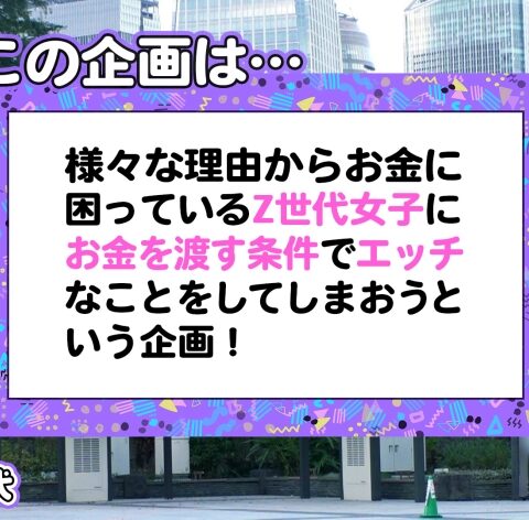 あらすじ:様々な理由からお金に困っているZ世代女子にお金を渡す条件でエッチなことをしてしまおうという企画!働きたくない!楽して稼ぎたい!責任を負いたくない!自由でいたい!etc.ヤれば楽して稼げると世の中を舐め切ったビッチな彼女たちに大人の厳しさを身体で教えちゃいます!!今回は社会人1年目の新卒OLユキちゃん。クレジットカードのリボ払いの仕組みをよく理解しないまま使いまくり100万円ほどのリボ地獄にw「なんとかなるっしょ」と特に気にしてないし、大量チ●コを笑顔で受け入れちゃうZ世代癒し系お姉さん!!
