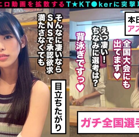 あらすじ:T☆kTokでエッチな動画を投稿するエロ可愛い女にDM(ダイレクトメッセージ)で連絡を取り、その場のノリでしれ~っとSEXまでしちゃおうという、次世代ナンパ企画!!今回のT☆kT●kerはで細身でスタイル抜群な清楚系カフェ店員(JD)!「責められるのが好きです」秘めた性癖を大暴露!身動きが取れない状況で玩具責め!顔をゆがめながら感じまくる!極スレンダーBODYに極太デカチンFUCK!快感で飛び跳ね絶頂ナカダシ3連発!!!